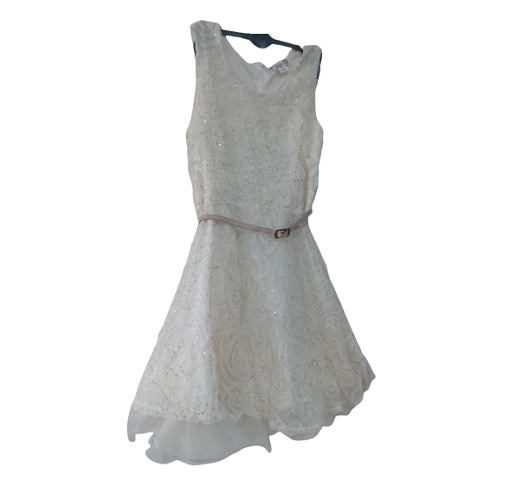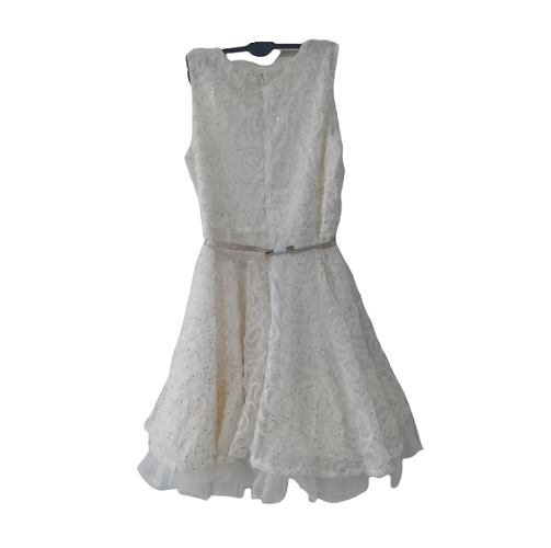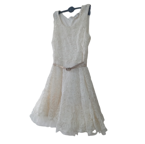 BABY GIRL’S FLAY DRESS, CREAM COLOR DESIGNED WITH GOLD BELT AND