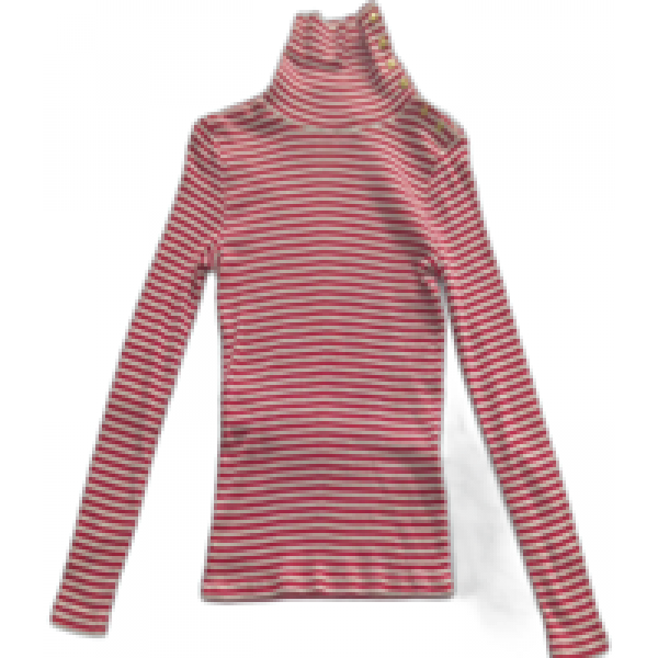 BLOUSE- RED & WHITE STRIP, LONGSLEEVE