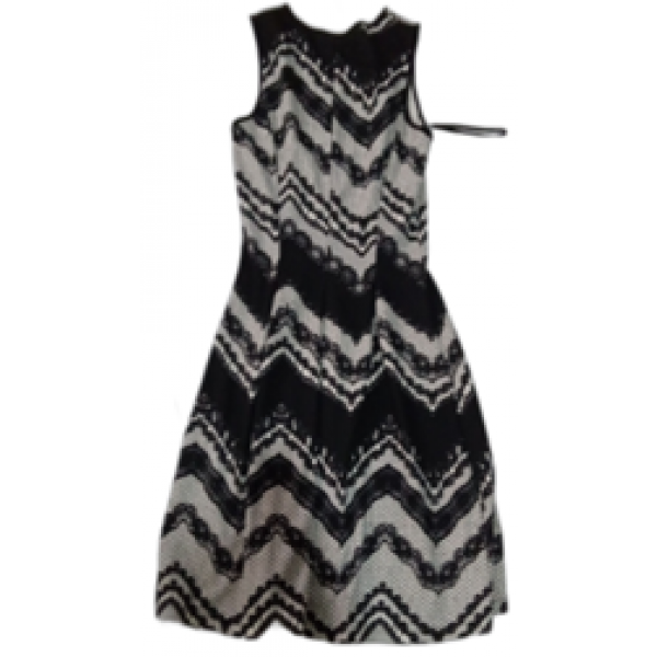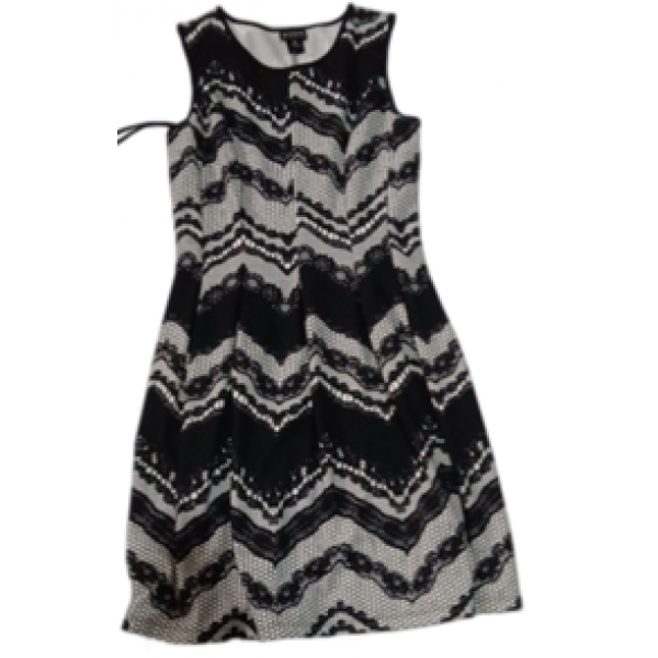DRESS- BLACK & WHITE, ZIGZAG STRIP