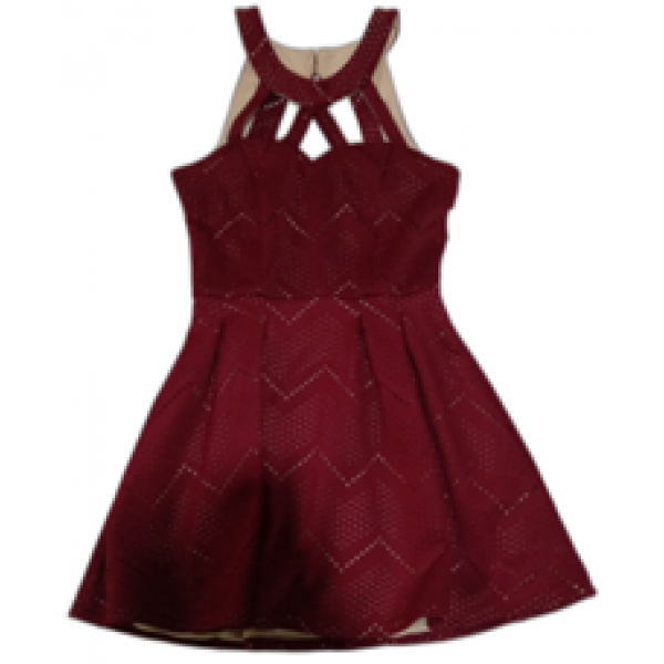 DRESS- RED WITH BROWN DOTS (PARTY DRESS)