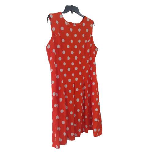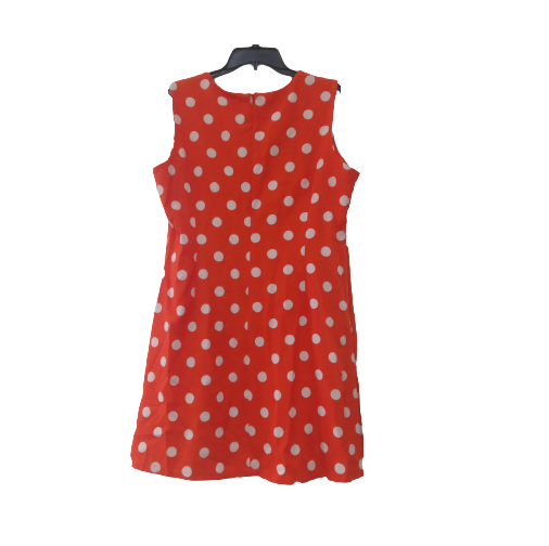 WOMEN’S SHORT DRESS, ROUND NECK, ORANGE AND CREAM POLKA DOTS.